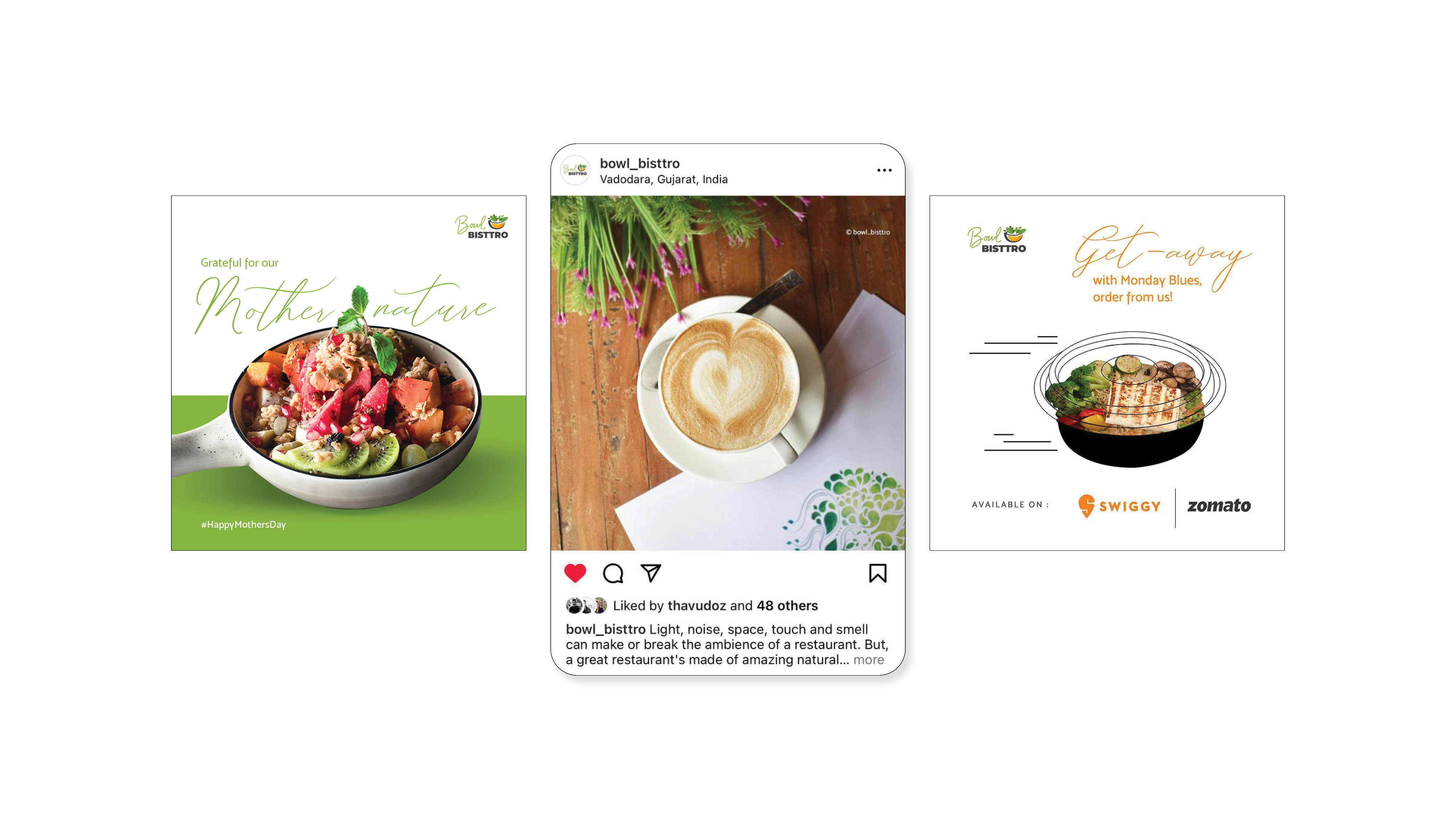 This project involved creating a visual system for Bowl Bisttro, an artisanal Soul food café restaurant in Vadodara, Gujarat, India. The aim was to showcase the restaurant's concept of using natural and healthy ingredients in their dishes.