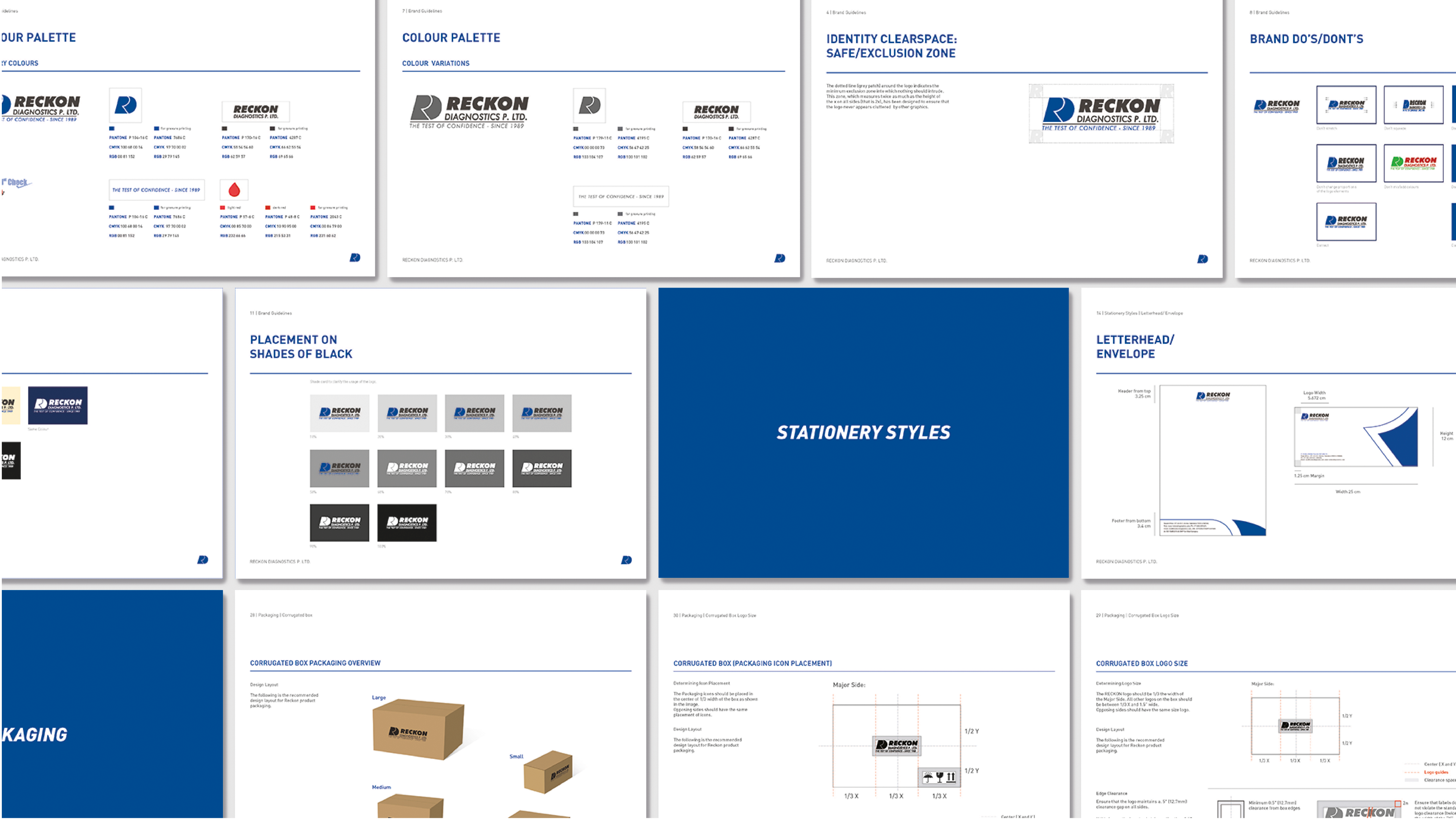 I worked on this project at StudioTik:Tok Pvt. Ltd. Our team was tasked with revamping the visual identity and packaging for Reckon Diagnostics P. Ltd, a well-known pharmaceutical diagnostics company located in Vadodara, Gujarat, India.